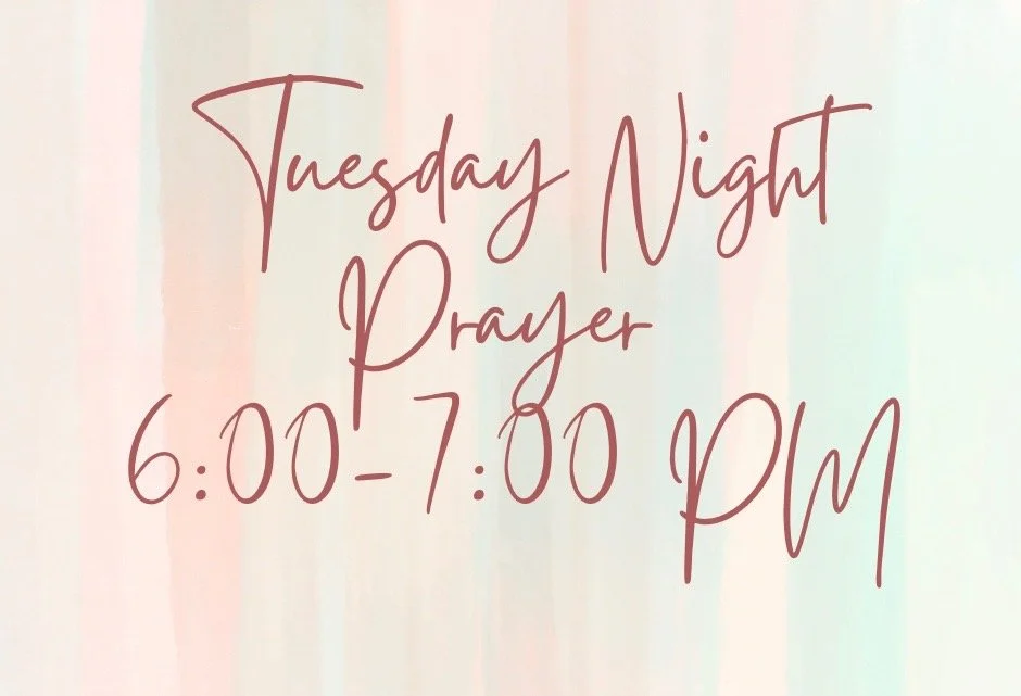 Join us every Tuesday night in the church auditorium for prayer. We begin at 6pm and end at 7pm.